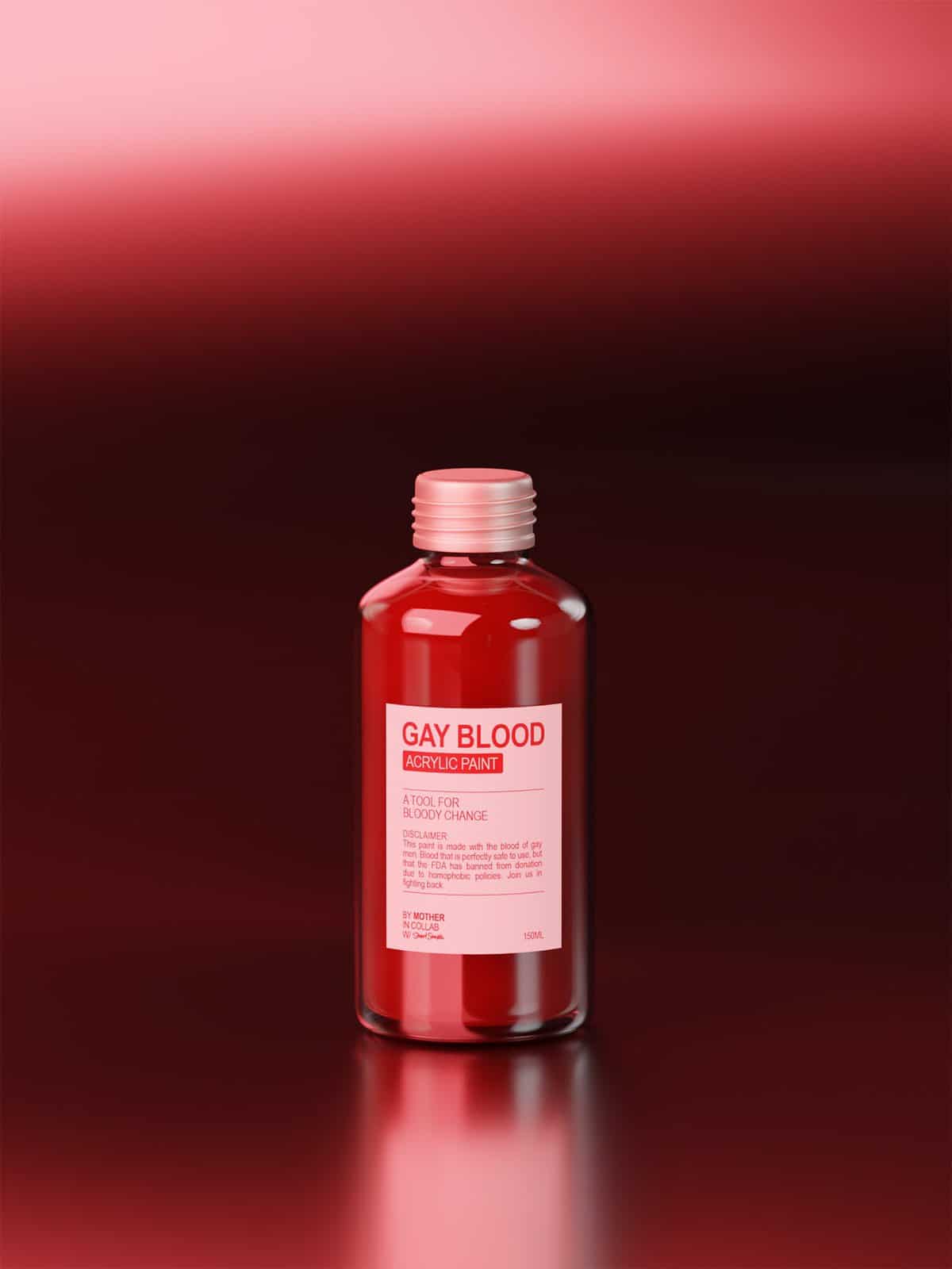 In collaboration with artist Stuart Semple, we created a collection of inks and paints made from the blood of gay Mother employees.