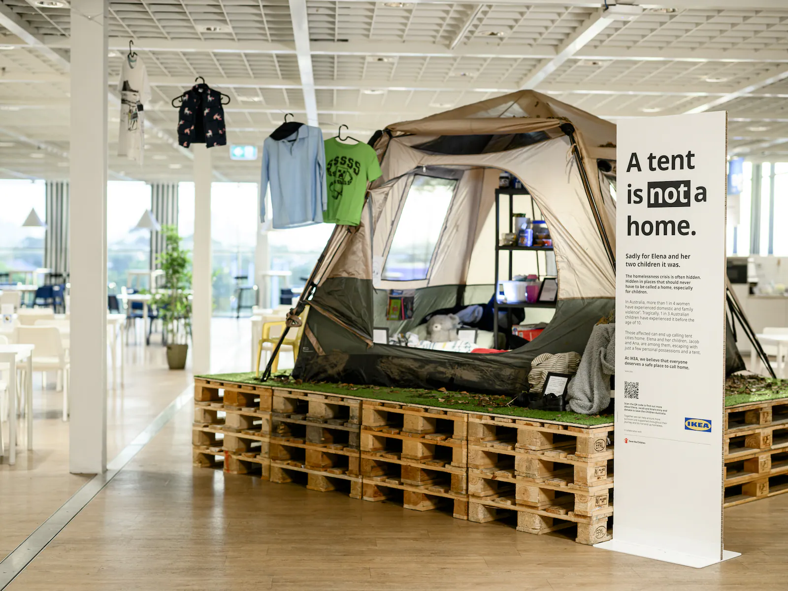 ‘This is not a home’ will be on display in the IKEA Tempe store from 5 June – 31 July. IKEA customers can make a donation to Save the Children at the IKEA checkout instore or online at ikea.com.au/aplacecalledhome